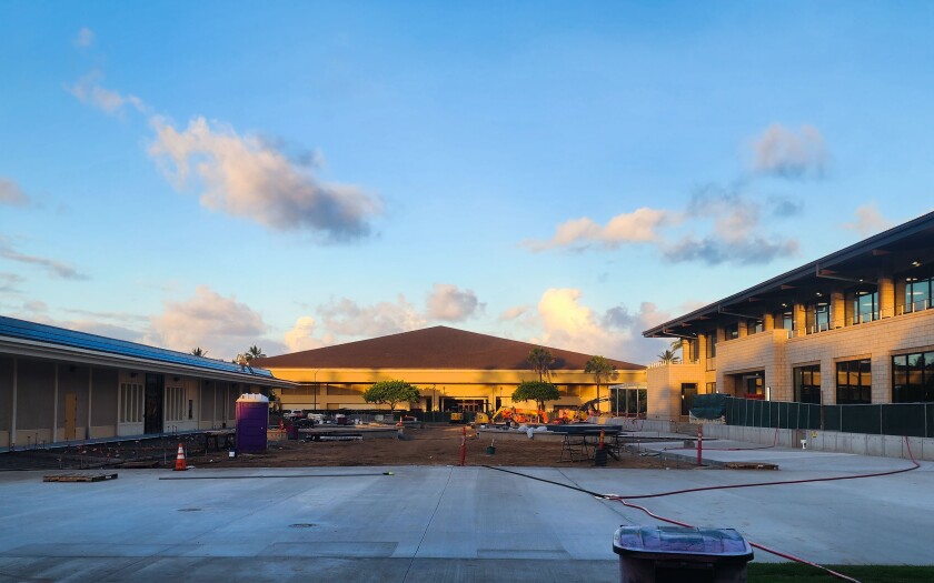 The Aloha Plaza is planned to be built where the old cafeteria once was. It will be a central gathering place for students and a place where people can congregate after graduation, with a goal of being finished by December 2023 in time for the Fall 2023 commencement.